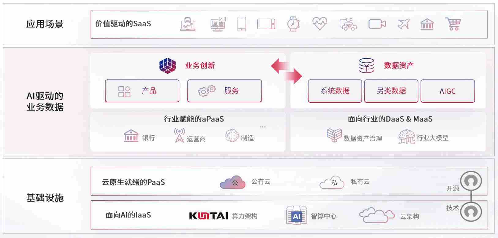 数字时代,,围绕企业数字化转型的关键要素,,,,z6com尊龙数码开创性的提出数云融合战略和技术体系框架,,,,着力在云原生、、、数字原生、、、、AI原生和信创产业上架构产品和服务能力,,,,为处在不同数字化转型阶段的快消零售、、、、汽车、、、金融、、、、医疗、、、政企、、、、教育、、、运营商等行业客户提供泛在的敏捷IT能力和融合的数据驱动能力,,构建跨界融合创新的数字业务场景和新业务模式,,,,助力企业级客户建立面向未来的核心能力和竞争优势,,全面推动社会的数字化、、、智能化转型升级。。。。